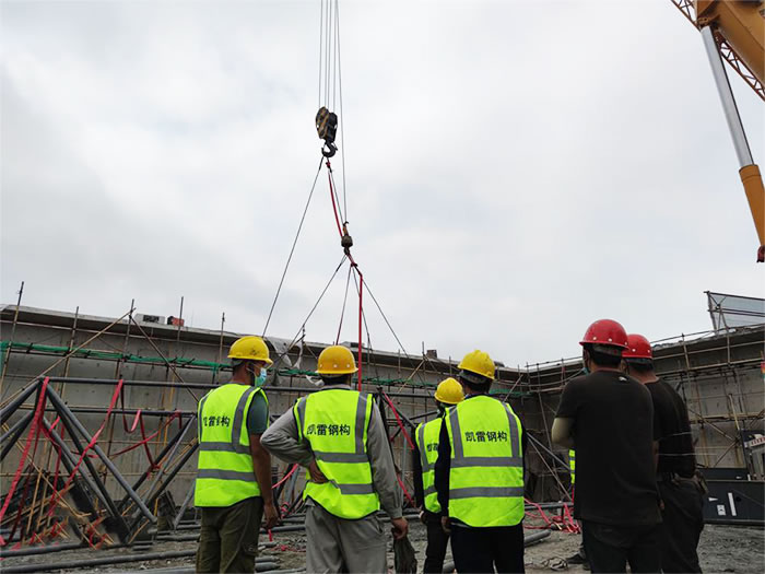 6.为确保.东港加油站球形东港网架安装顺利,应有详细的东港施工组织设计。网架安装必须保证结构的稳定性和不产生的附加变形。